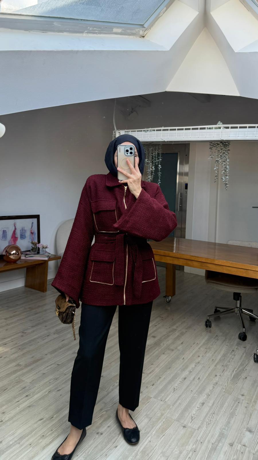 İthal Tasarım Chnl Ceket - Bordo Ön Sipariş