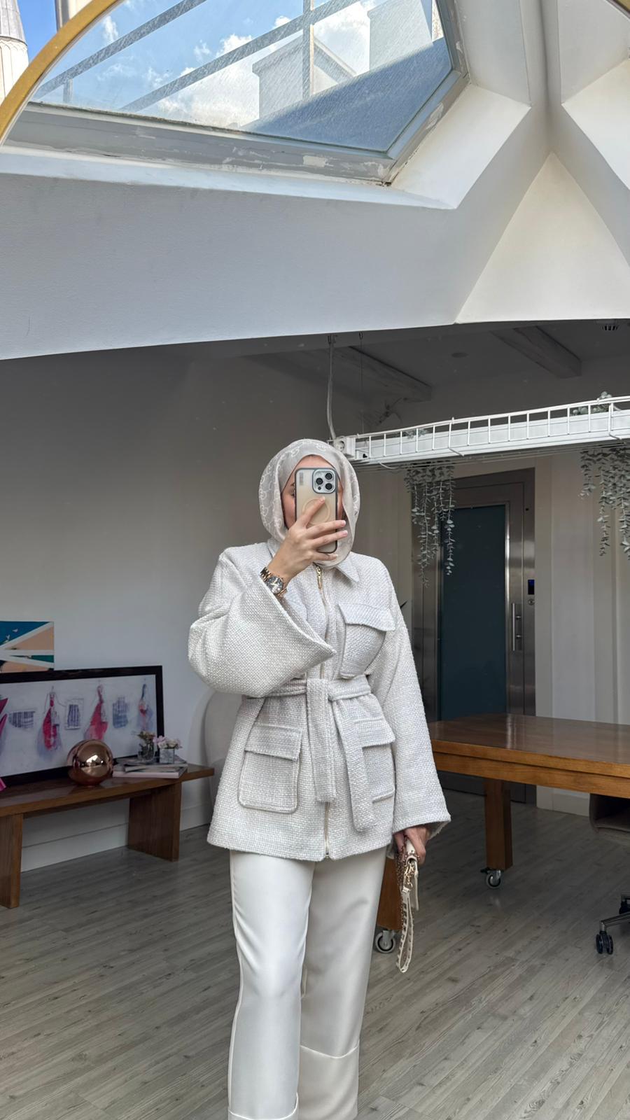 İthal Tasarım Chnl Ceket - Krem Ön Sipariş