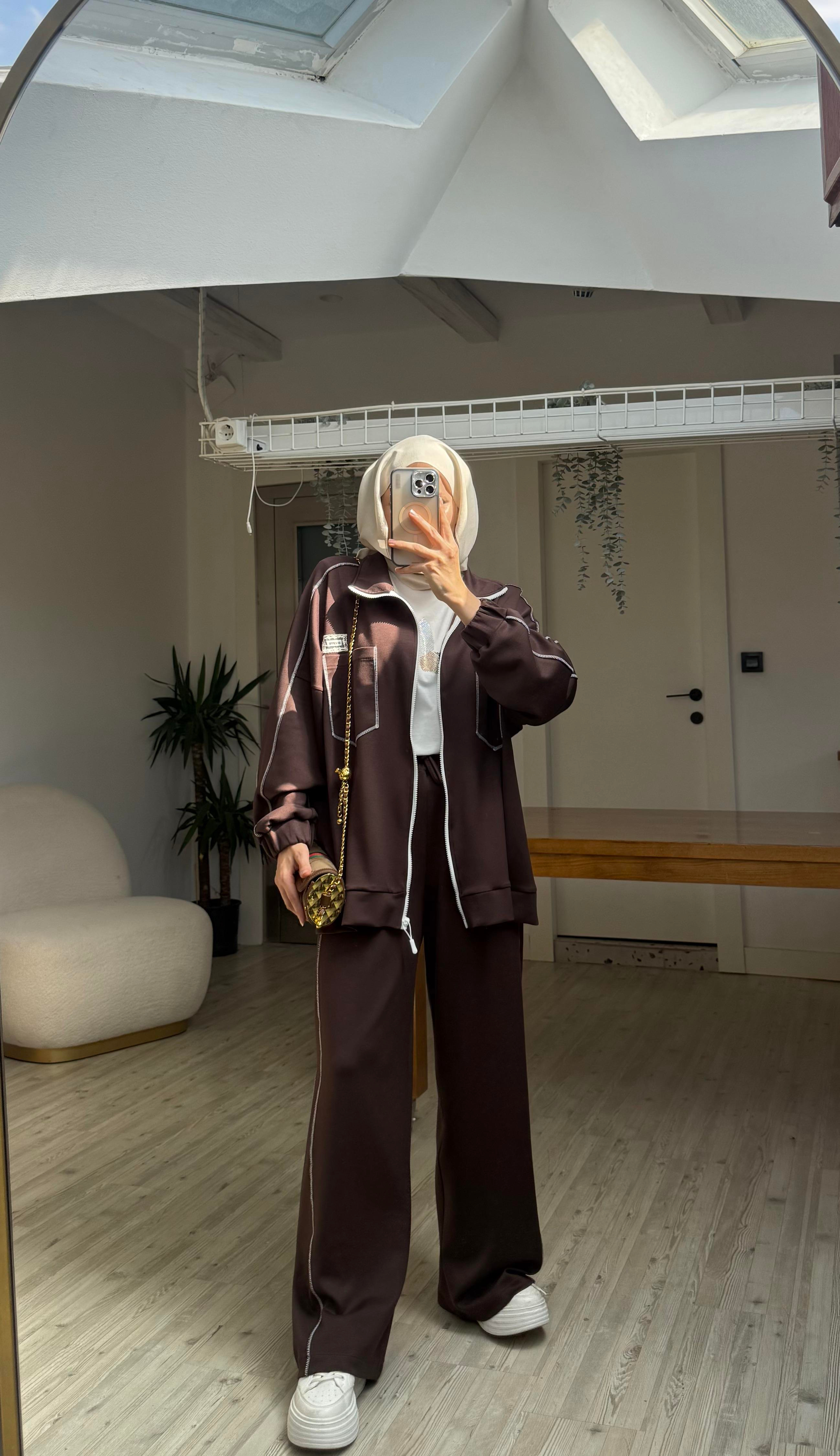 Kontrast Detaylı Oysh Takım Kahverengi Ön Sipariş