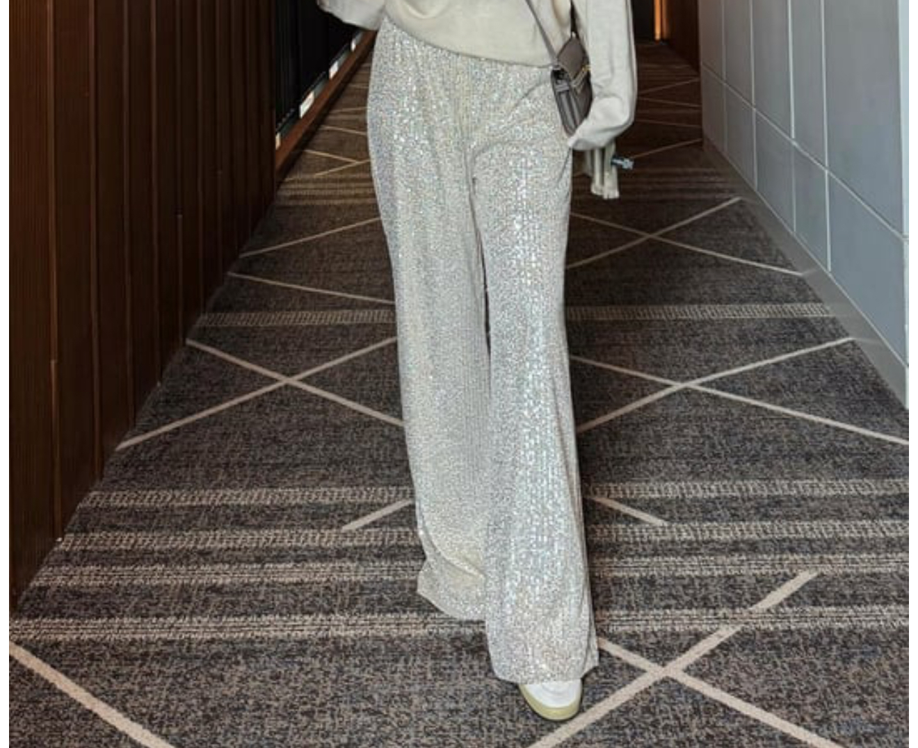Pulpayetli Palazzo Kesim Pantolon Bej