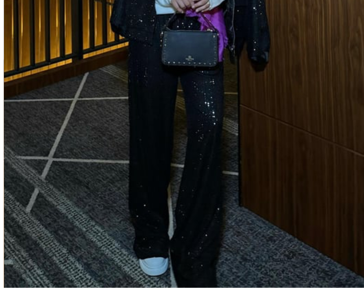 Pulpayetli Palazzo Kesim Pantolon Siyah