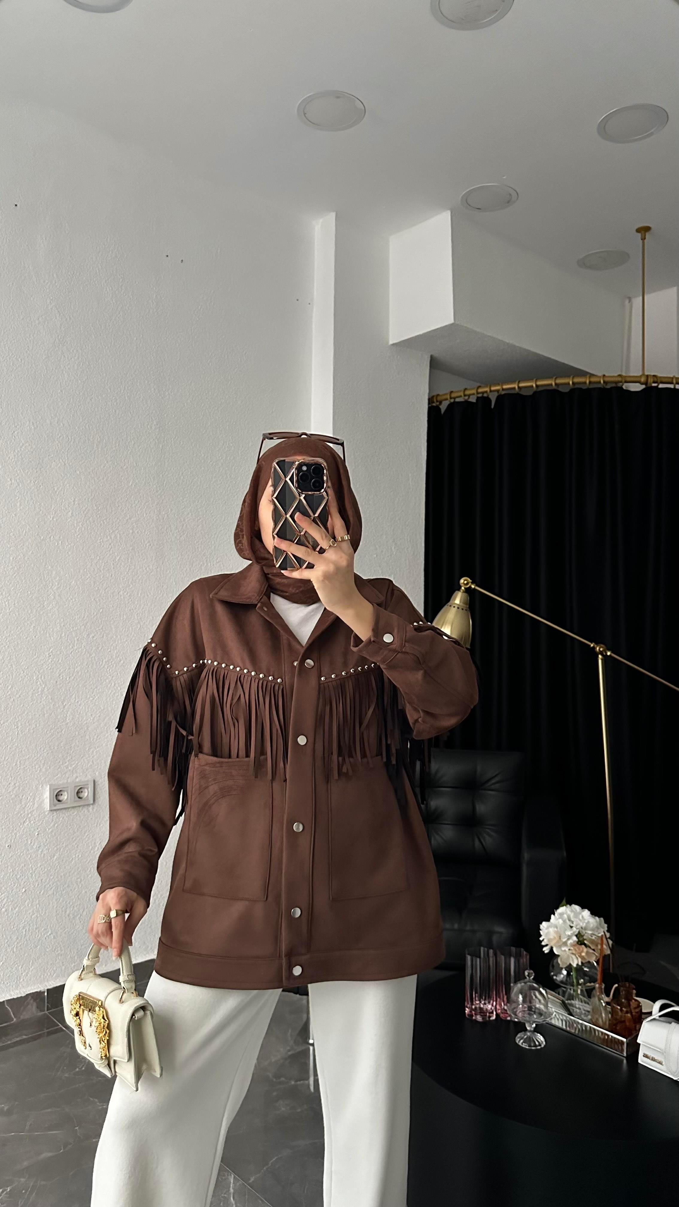 Süet Püsküllü Tasarım Ceket /Kahverengi