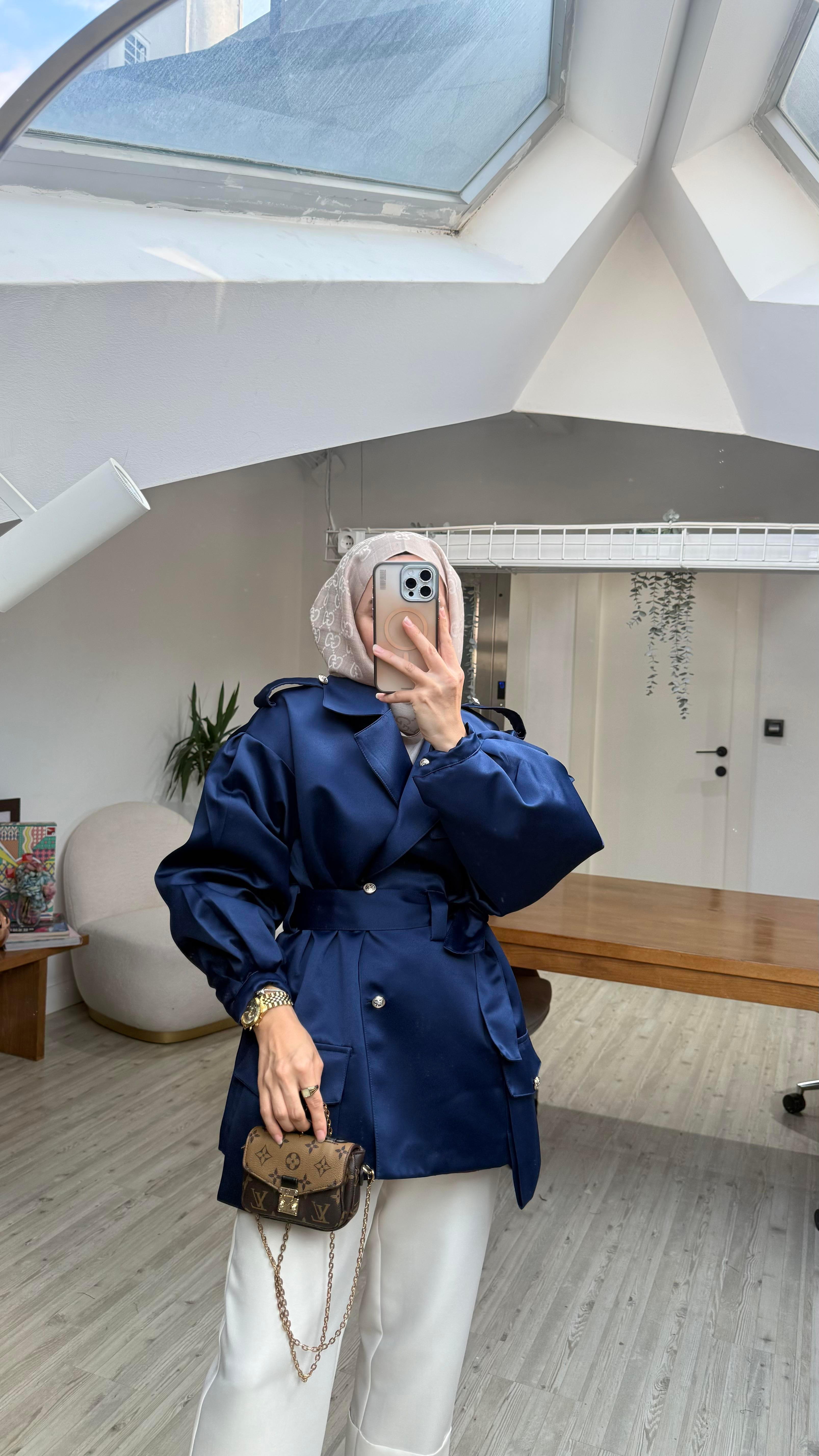İthal Kumaş İç kısmı kapitoneli Kruvaze model S/M/L bedenlidir 36-44 bedene uygundur Boy 75 cm Seyyar kuşaklıdır